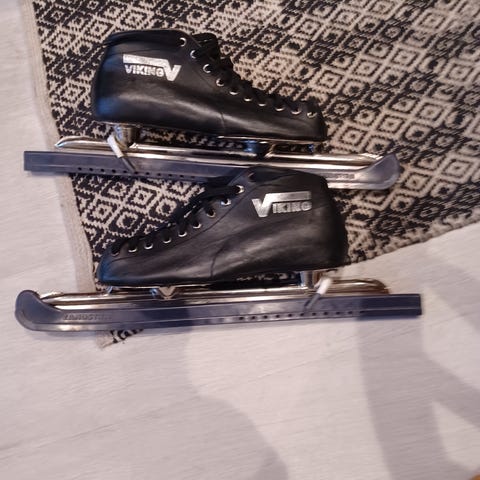 Gamle men strålende Viking lengdeløpere i størrelse 44. Slipt for en uke siden i Sørmarka arena, og klar for bruk! Har byttet de gamle lissene med noen mer robuste lisser. Har du veldig bred/høy fot kan det hende at lissene er noe korte.