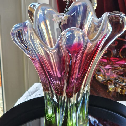 Selger disse tre kunstneriske gjenstandene av glass, to vaser og tja, hva er det egentlig?