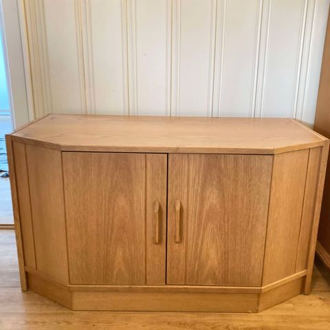 Det er en enkel tv benk/hylle/kommode som kan brukes liggende eller stående å veldig fint å ha noe bokser eller bøker i, å litt forskjellige ting oppå.