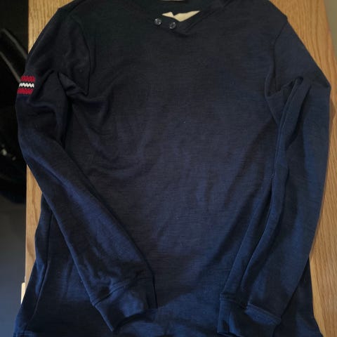 Ser nesten ny ut og holder seg godt i fargen. Kul og unik. God i størrelsen.