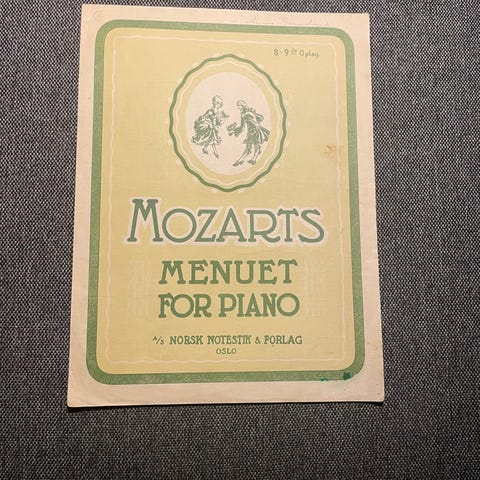 Flott gammelt notehefte.Mozarts Menuett-bud ønskes