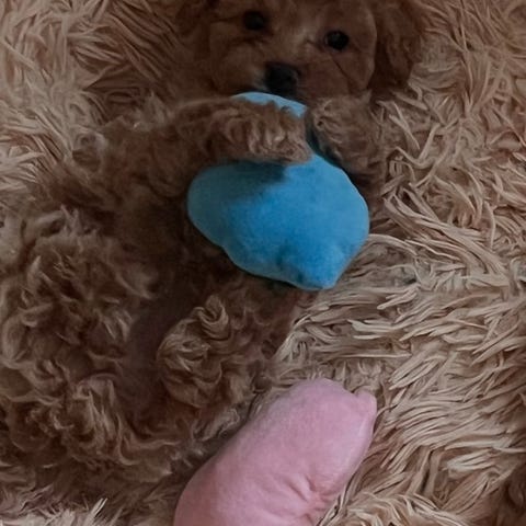 🐾 Pappa er en energisk Toy Puddel på 3,5 kg – svært sosial, vennlig og en ekte familiehund.