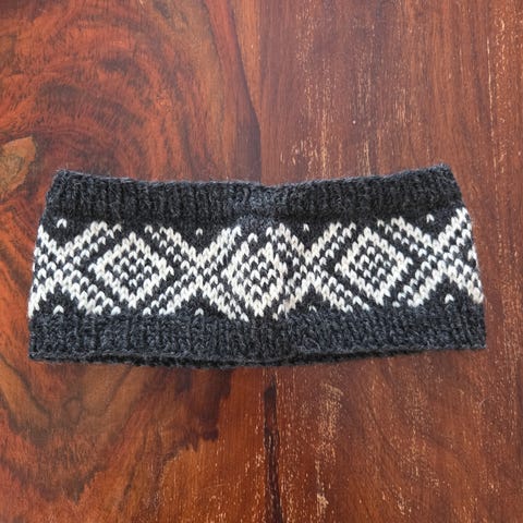 Strikka pannebånd i voksen størrelse.