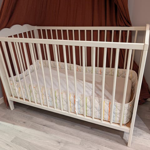 IKEA Sprinkelseng barneseng med hvit farge. Egnet for små barn og designet for sikkerhet og komfort. Ingen madrass