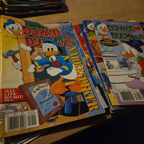Selger en bunke eldre Donald Duck-blader