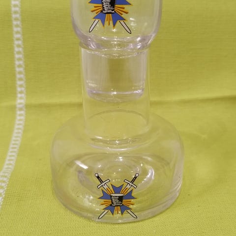 17 cm høy karaffel inkludert glass på toppen, med inngravert "med hilsen fra Feiring Bruk" - Det er en vakker karaffel - dessverre er det nok en gave som ett firma har bestilt fra Feiring Bruk. Tenkte hvis noen hadde jobbet på Feiring Bruk - eller en i familien har jobbet der - kan den jo ha en affeksjons verdi