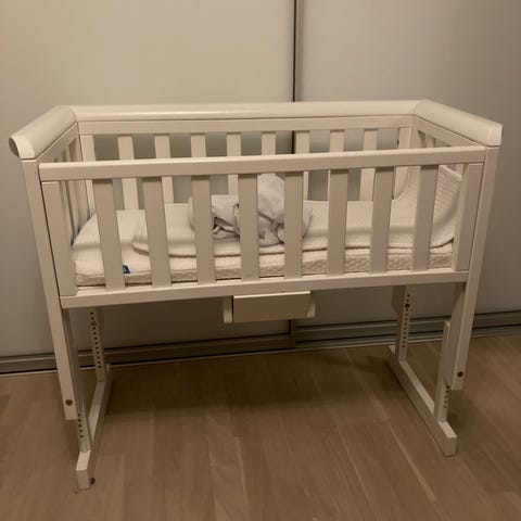 Troll Bedside Crib. En eldre modell enn på bildet, hvor den ene siden kan tas helt ned. I fin stand, og lite brukt.