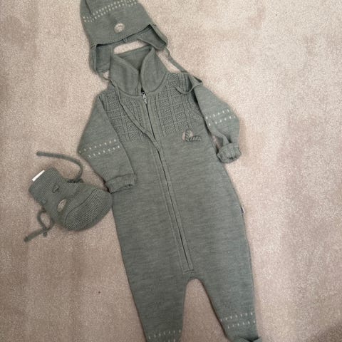 Lillelam heldrakt i merinoull for barn, størrelse 80. Fargen er beige, og produktet er unisex. Laget av merinoull, egnet for bruk som mykt og varmt undertøy eller ytterplagg for barn. Aldri brukt. Men merkelapp er revet av.