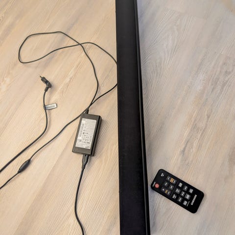 Philips TAH5515 soundbar med fjernkontroll. En lydplanke designet for å forbedre TV-lydopplevelsen. Enheten kobles til via kabel og har Bluetooth-funksjonalitet for trådløs tilkobling. Fjernkontrollen gir enkel styring av lydnivå og funksjoner.