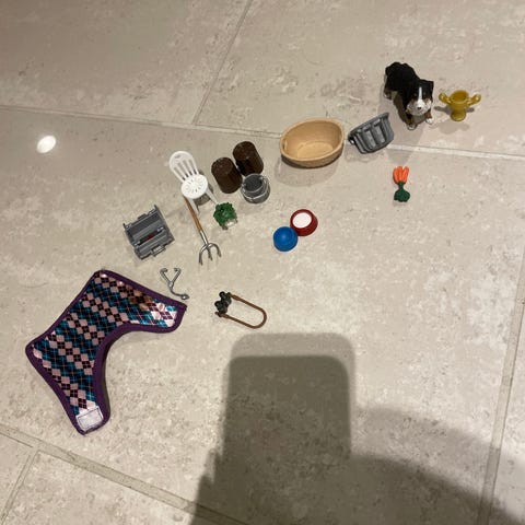 7 flotte hester fra Schleich med diverse utstyr og tre ryttere selges
