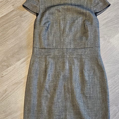 Elegant og tidløs rutete kjole fra H&M. Kjolen har flatterende V-hals, lange ermer og en figurnær, klassisk passform. Gullfargede knapper på skuldre og mansjetter gir et sofistikert uttrykk. Lukkes med skjult glidelås bak.