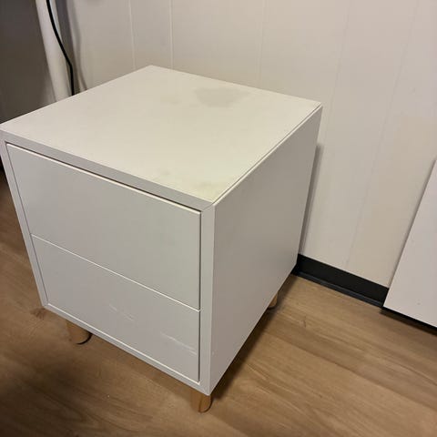 Praktisk nattbord med en skuff og hyller inni. Regner med den er ca. 80 cm høy. Må hentes:)