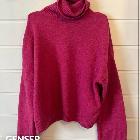 Rosa strikket cape-genser med høy hals -NY