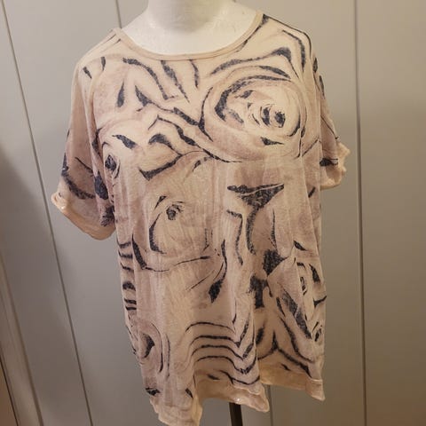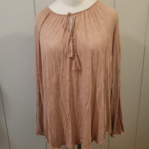 Rosa topp med 3/4-ermer og en rund, rynket hals. Laget av 55% lyocell og 45% viskose og har en avslappet, oversized passform.