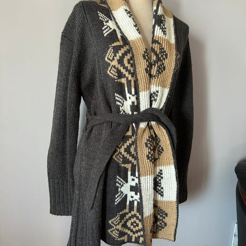 Den er uten knapper og har ribbestrikkede partier rundt kantene og i nakken .