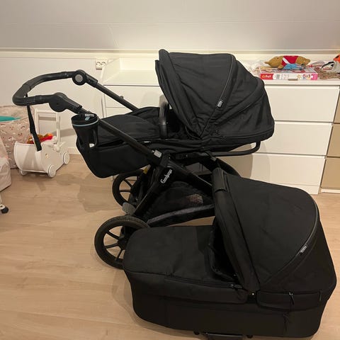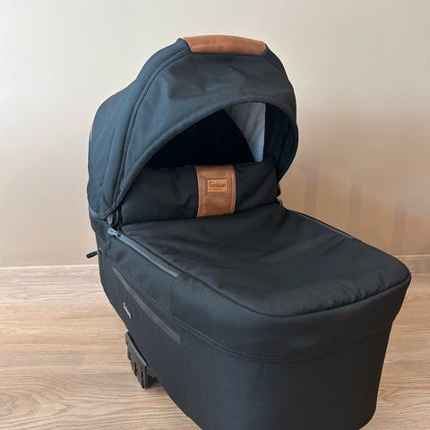 Emmaljunga liggedel+, 2025- modell, i fargen outdoor navy. Kjøpt fra Barnas Hus Nordås våren 2025. Pent brukt til sommer baby. Kan brukes til alle Sento- modeller. Baby har aldri ligger direkte i bagen, alltid hatt tisselaken under.