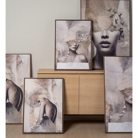 Selger poster av interiør, varme toner. Litt rosa/oransj/beige. Innebygd passepartout (hvit kant). 50x70. Selger også alle de andre posterne i bildet ,se andre annonser eller skriv til meg.