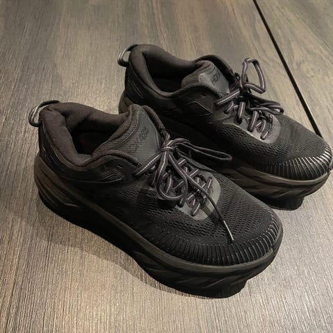 Hoka sneakers/joggesko i størrelse 39. Skoene er svarte og designet for allsidig bruk.