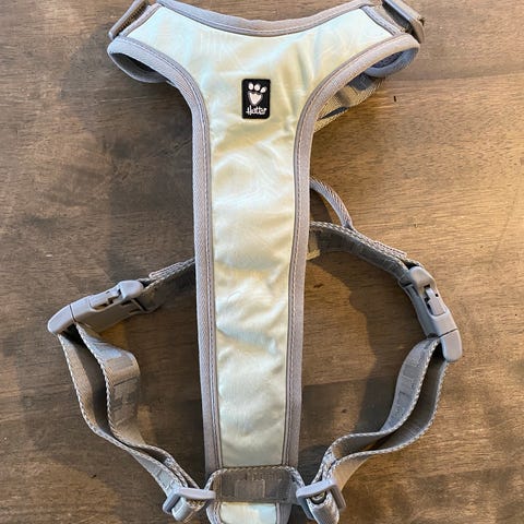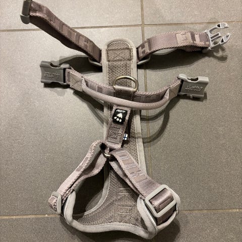Jack Wolfskin hundesele i lys grå farge. Designet for å gi komfort og kontroll ved lufting av hund. Passer til små til mellomstore hunder.
