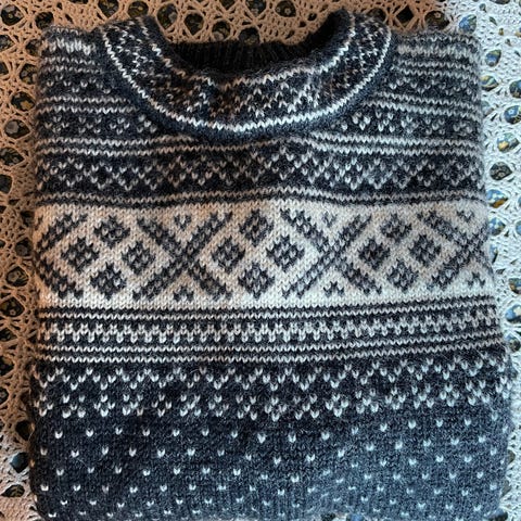 Selger min hjemmestrikkede setesdalgenser, som dessverre ikke passer meg. Vil anslå mellom xxs/xs og s.