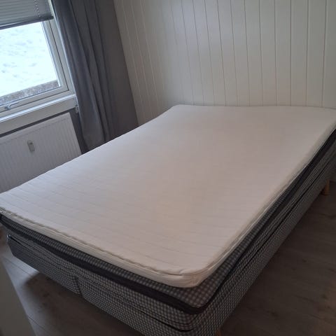 Pent brukt IKEA seng typ Sultan med overmadrass. 180 bredde (2x90). Ca 12 år gammel. Fortsatt god. Overmadrass byttet for ca 5 år siden.