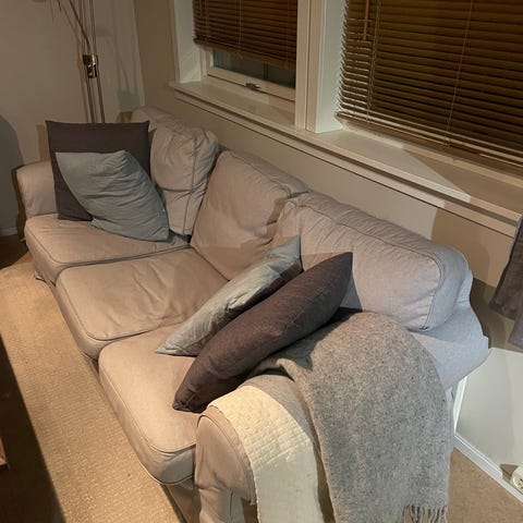 Selger en fortsatt fin sofa men trenger en rens. Kjøper må hente