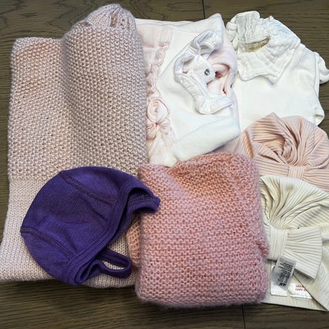 Fint brukt strikkede klær for jente i str.122 - 128.