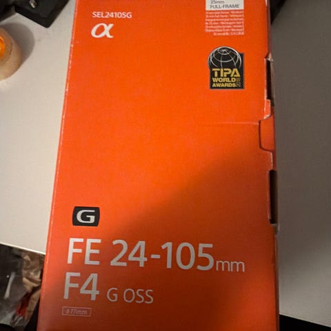 Sony FE 24-105mm f/4 G OSS objektiv med zoomfunksjon og optisk bildestabilisering. Objektivet er designet for Sony FE-kameraer og har en brennvidde på 24-105 mm og en konstant blenderåpning på f/4. Passer for fotografering innen landskap, portrett og generell bruk.