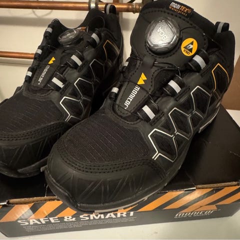 Helt nye vintersko selges. Var for store for meg. Monitex waterproof, står det på dem. Regner med det er produsentens svar på Goretex.