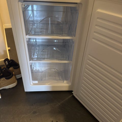Sprekk i en skuff, samt innsiden av fryseskapet. Se bilder. Fungerer og vært brukt inntil nylig.