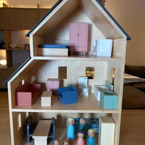 Nydelig og pent brukt dukkehus fra Alice & Fox. Passer godt til Maileg figurer og møbler. Dukkehuset er malt i fargene St.Pauls blue og Minty Breeze (trappene). Dukker og møbler følger ikke med. Må hentes på Nordnes i Bergen.