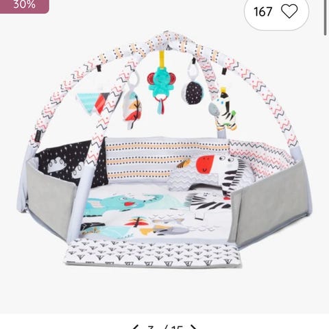 Babygym fra Kids Concept. Babygymmen har en myk, vattert bunn med fine, hengende, avtagbare figurer. Uåpnet.