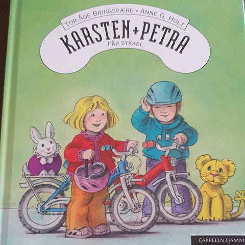 Karsten og Petra får sykkel. Som ny da den ikke har blitt lest pga litt for mye bøker i huset.