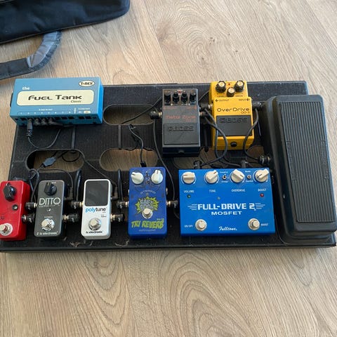 Digitech Whammy gitarutstyr i rødt. Effektpedal designet for gitarbruk med justerbare innstillinger og fotkontroll for tonevariasjoner.