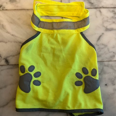 Refleksvest til hund i gul og svart farge. Vesten har justerbare stropper og reflekterende detaljer for økt synlighet. Egnet for bruk ved utendørsaktiviteter som turer i mørket.