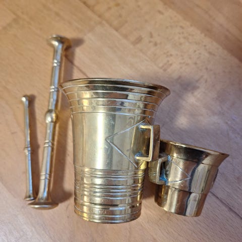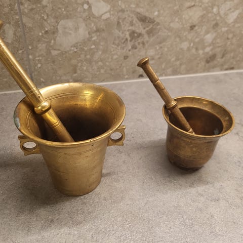 To Messing Morter med Støter Sett