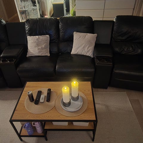 Sofa med sjeselong i svart stoff. Passer til stue og gir ekstra sitteplass med sin sjeselongfunksjon. Den må renses litt, da det er noen flekker, og selges derfor veldig rimelig. Må hentes på Stabbestad, og må avtales tid, kan hjelpe til å bære ut, er der nå i helgen