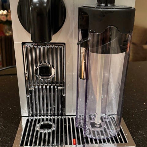 De'Longhi Nespresso kapselmaskin i svart farge. Maskinen har et kompakt design og er beregnet for bruk med Nespresso-kapsler. Utstyrt med kontrollpanel for enkel betjening, avtakbar vanntank og avtakbar melkeskummer. Delene går i oppvaskmaskin. Har stått i feriehus, og selges kun fordi vi nå har flere.