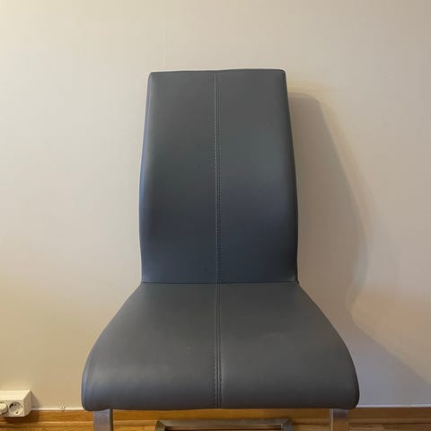 Stolene har elegante svarte metallben og er pent brukt uten synlige skader. Komfortable og stilrene – passer perfekt til spisebord eller som ekstra sitteplasser. Selges samlet. Pris 500 nok stk