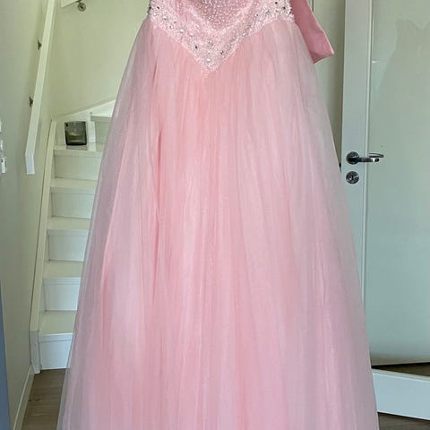 Lychinor kjole til spesiell anledning i størrelse XXS-medium. Det er snøring i ryggen. Kjolen er rød og laget av polyester. Den kan leies hvis ønskelig til 2000kr, hvor depositum er også 2000kr. Min datter brukte denne på ball og hun er 165 lang. Vil du kjøpe kjolen så koster det 6000kr.