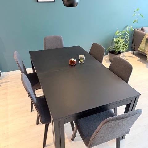 Selges samlet. Stolene koster 6599 kr per stykk på Bohus, så de 5 hele stolene selges for under halv pris. Den knekte får dere jo da med på kjøpet hvis dere ønsker.
