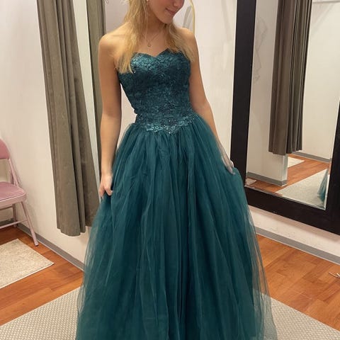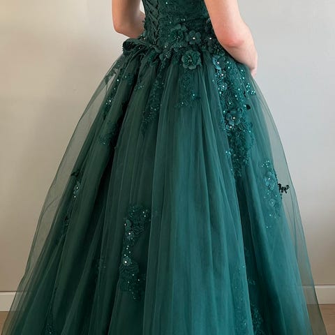 Nydelig, smaragdgrønn ballkjole fra Lychinor selges. Kjolen er pent brukt 3 ganger.