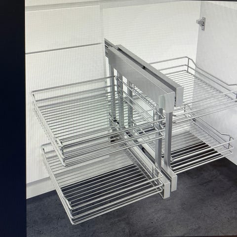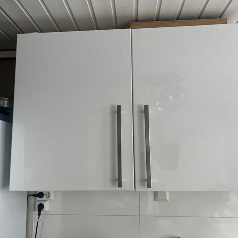 Vi har installert skuffer, så denne skapdøren og platene inni selger vi