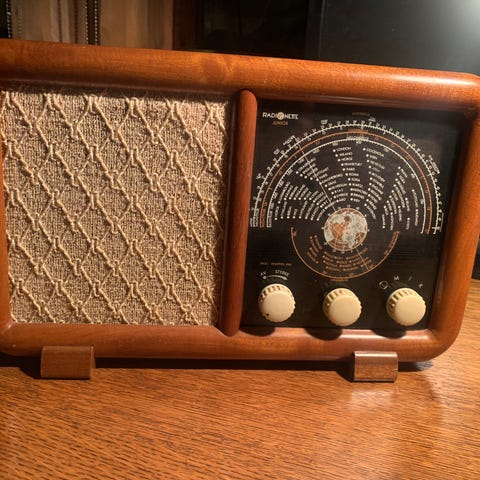 Radiomette radiomottaker med trepanel, analog tuner og flere kontrollknapper. Enheten har en bredde på ca. 40 cm og en høyde på ca. 27 cm. Designet for innendørs bruk med fokus på mottak av radiofrekvenser.Den fungerer ikke og veier åtte kilo. Jeg kan sende den via PostNord.