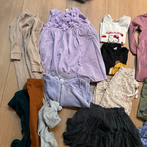 Alle plaggene er hele og uten hull eller skader. Små flekker forekommer på noen av klærne. Perfekt til barnehagebruk 😊