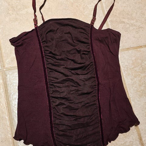 Eldre hm topp, tynn (gjennomsiktig) fin med topp under eller blondeundertøy