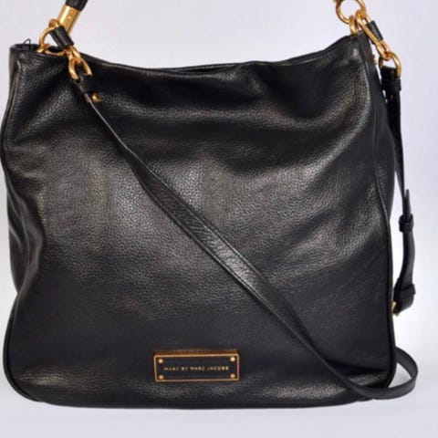 Godt brukt, eldre veske fra Marc by Marc Jacobs. Modell «TOO HOT TO HANDLE HOBO». Dustbag følger med. Har noen små hvite flekker på skinnet, se bilde. Reimen er litt ødelagt på den ene siden, så dette må ev. fikses, se bilde.