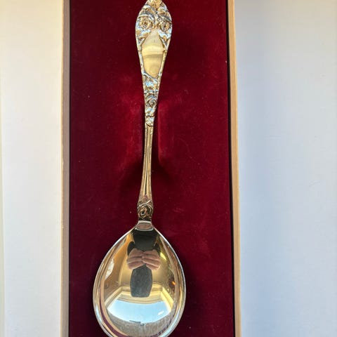 Klassisk rokokko-/blomstermønster. Pene og velholdte med normal bruksslitasje. Passer perfekt som dessert-, kaffe- eller barneskjeer.