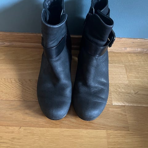 Sorte boots ønsker ny eier. De er godt brukte, men er fremdeles fine, gode å gå i. Laget av lær.