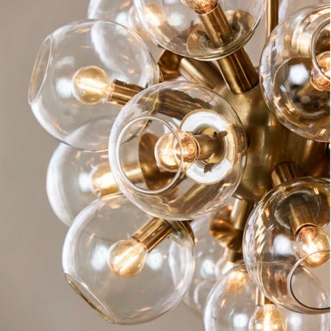 Taklampe røykfarget glass - selve pære følger med (på bildet hvor lyset er slått på). Ledningen kan justeres i lengde. Selve lampe er omtrent 50cm.